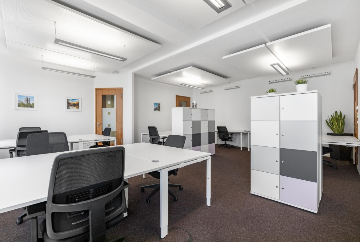 Inside, the building features private offices, coworking areas, and meeting rooms designed for day-to-day productivity. High-speed Wi-Fi supports modern working, while shared kitchens and breakout spaces provide informal areas for coffee breaks or team discussions. On-site staff manage reception and daily operations, and cleaning services are included to keep everything running smoothly.