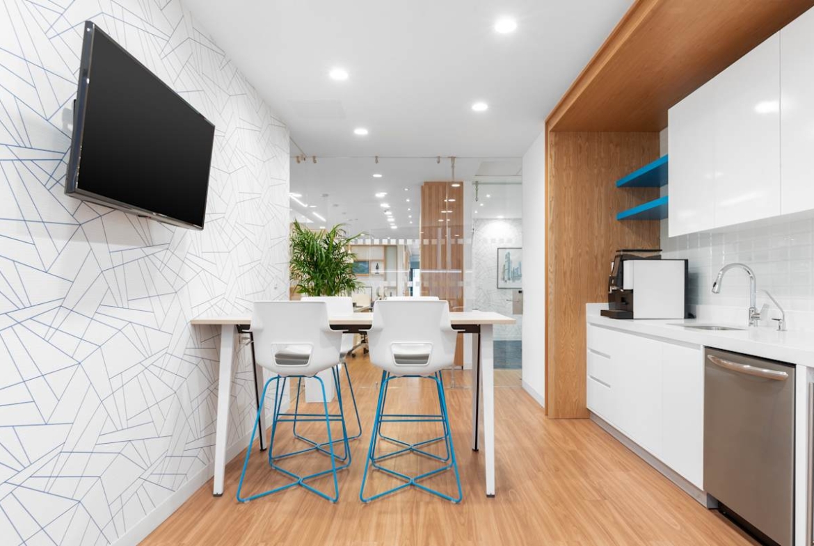Choose from private offices, coworking desks and meeting rooms on a light, upper-floor setting with city views. High-speed Wi‑Fi, ergonomic seating and equipped rooms support hybrid work throughout the day. In addition, on-site reception, daily cleaning and stocked kitchens keep operations smooth and predictable. Quiet booths and informal breakout areas provide space to focus or catch up between tasks.