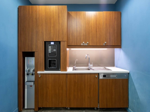 On the 18th floor, workspace spans private offices, coworking areas, and meeting rooms with city views. Tall windows draw in natural light and open up sweeping city views. Breakout areas, stocked kitchens, and a comfortable lounge support informal catch-ups and focused work. In addition, lifts, raised flooring, suspended ceilings, and on-site parking keep the setup practical and efficient. Meanwhile, the on-site gym offers a straightforward way to unwind before or after work.