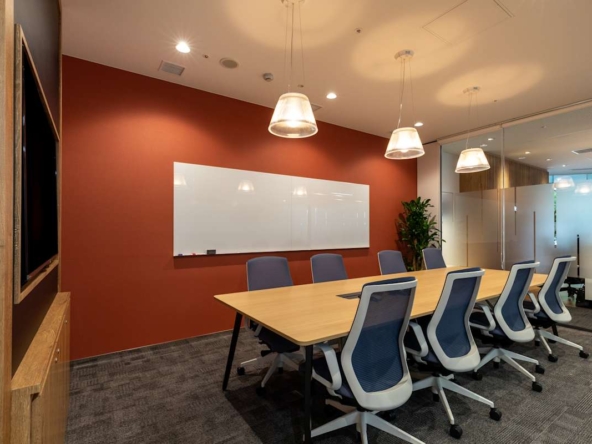 Inside, bright workspaces feature light wooden finishes, warm accents, and access to outdoor terrace space. In addition, private offices, coworking zones, and meeting rooms sit beside breakout areas and a snack bar. Plus, on-site teams manage cleaning and support, and reliable Wi-Fi keeps work moving. CCTV monitoring, lifts, raised floors, and suspended ceilings enhance security, accessibility, and efficient systems like LED lighting.