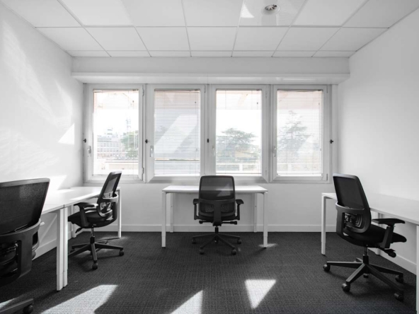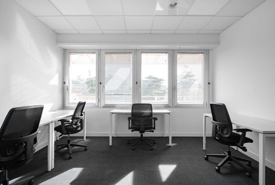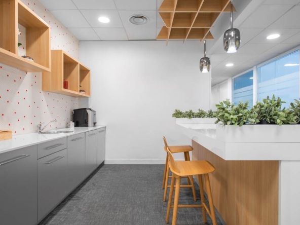 The building offers private offices, coworking areas, and meeting rooms, all fully furnished and supported by high-speed Wi-Fi. Large windows bring natural light into the workspaces, while modern layouts provide a comfortable setting for day-to-day tasks. On-site amenities include a gym and coffee bar, alongside shared kitchens and breakout areas for informal meetings or quick breaks. Reception staff manage arrivals, deliveries, and daily services, with cleaning and maintenance included.