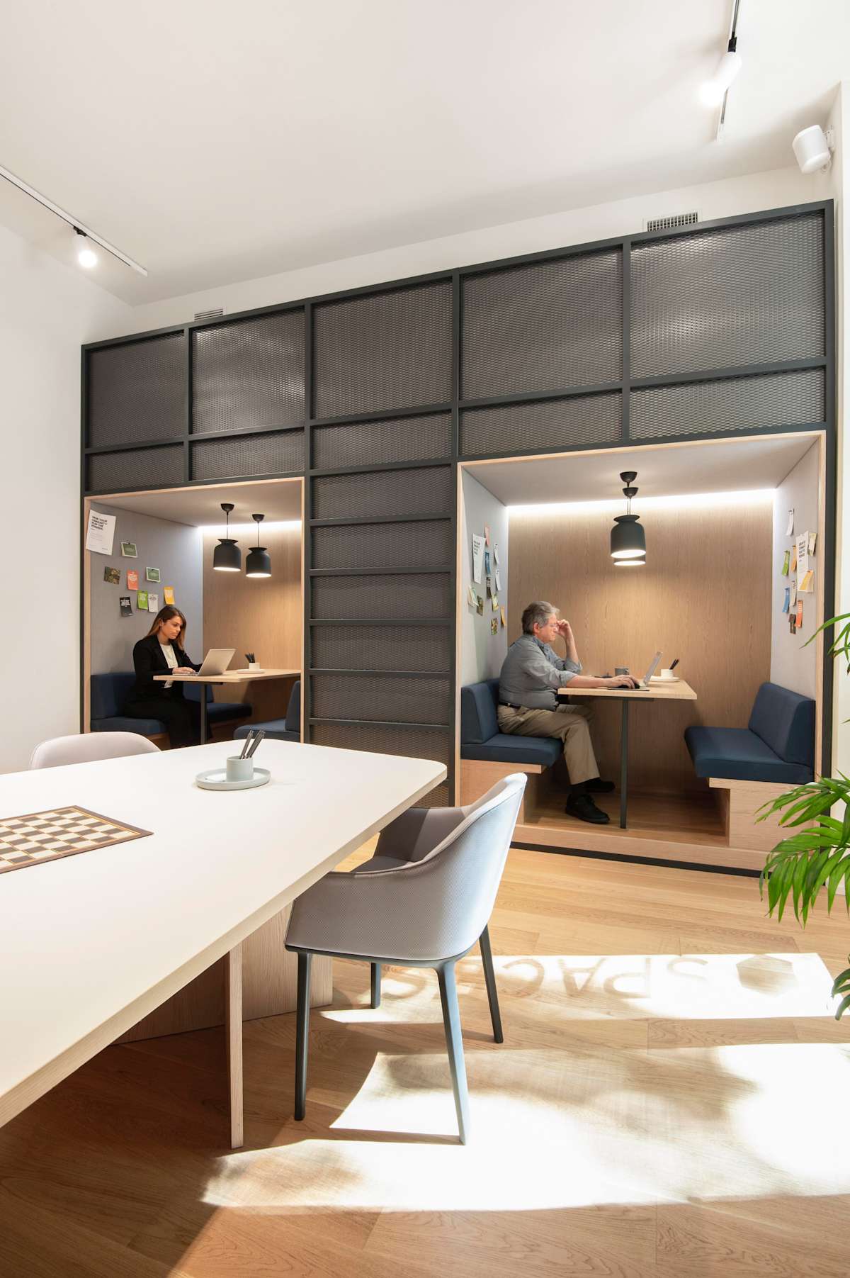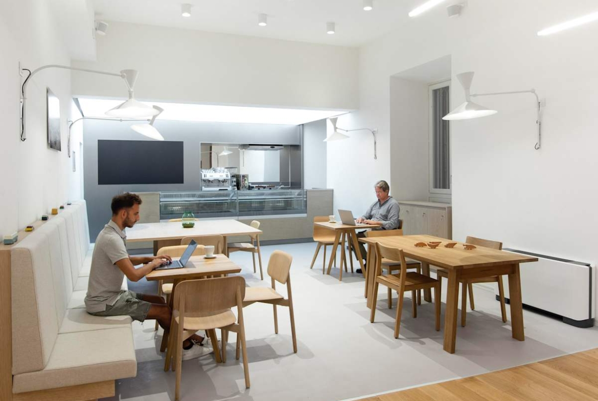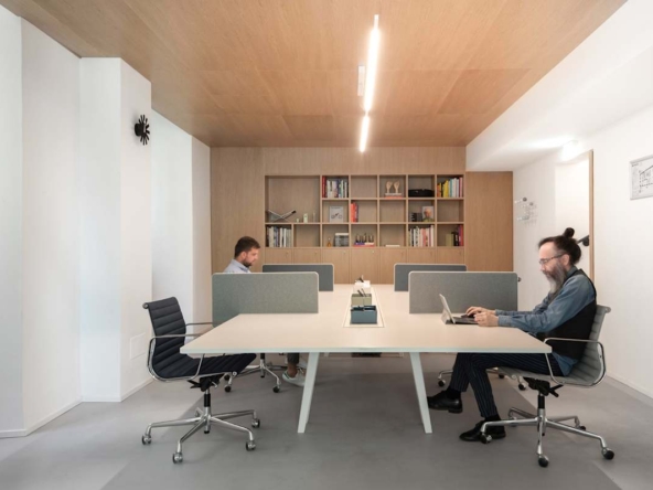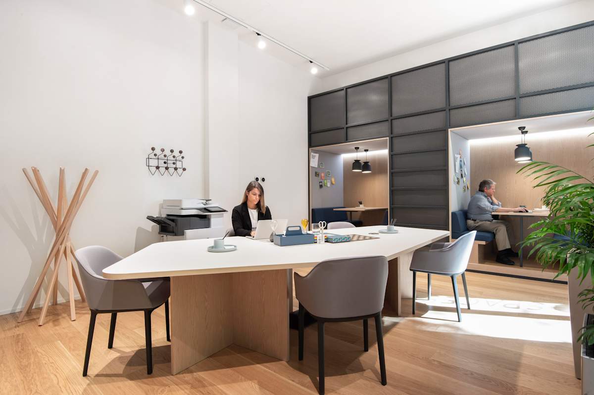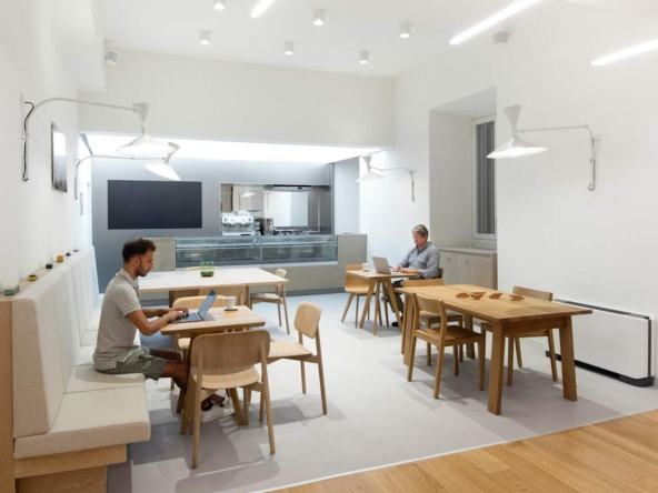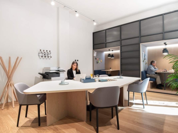 The building spans seven floors and provides private offices, coworking areas, and meeting rooms arranged for flexible use. Breakout spaces and communal lounges give teams areas for informal catch-ups, while high-speed Wi-Fi supports video calls and online collaboration. On-site staff handle reception, cleaning, and maintenance, allowing teams to focus on their work. A rooftop terrace offers space to take a break or enjoy views across Rome.