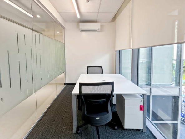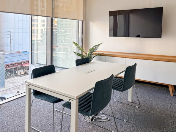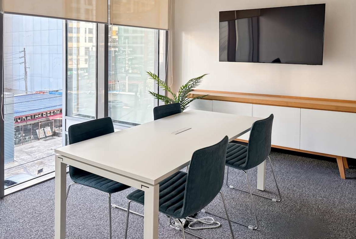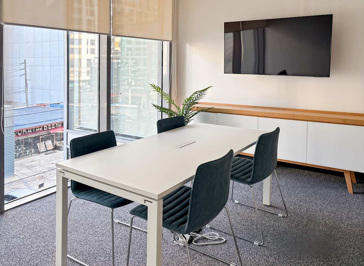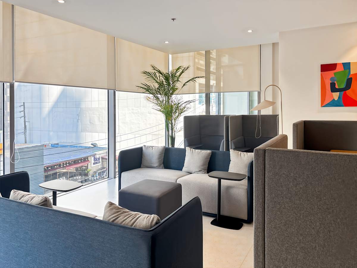 Inside, the building offers private offices, coworking areas, and fully equipped meeting rooms. Spaces are move-in ready, with high-speed internet and modern furnishings throughout. Breakout areas and lounges provide space for informal catch-ups, while AV-equipped meeting rooms support client presentations, training sessions, and virtual calls.