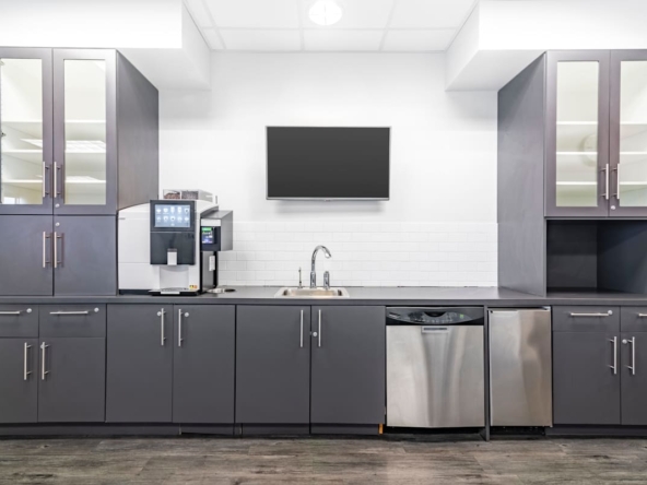 Inside, private offices, coworking areas, and bookable meeting rooms cover different ways of working. In addition, high-speed Wi‑Fi, ergonomic furniture, and on-site staff come as standard, with phone booths and business‑class printers for focus work. Showers and secure bike storage support active commutes, while stocked kitchens, breakout areas, an on-site café, and a wellness room help teams recharge. Plus, event space, phone booths, and business‑class printers are available when you need them. Furthermore, regular networking events bring teams together without leaving the building.
